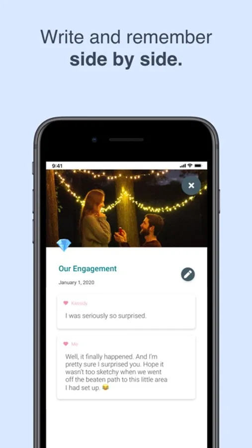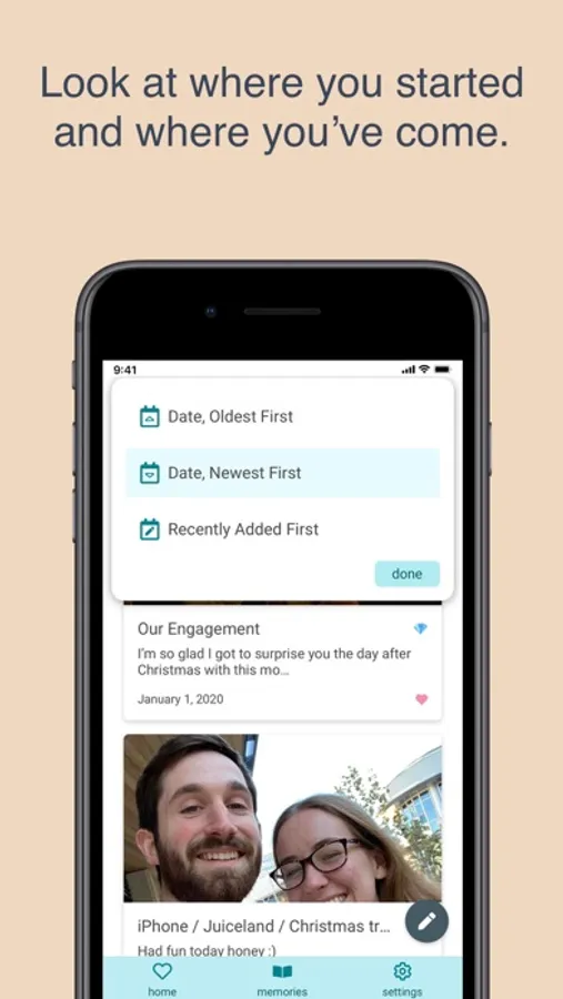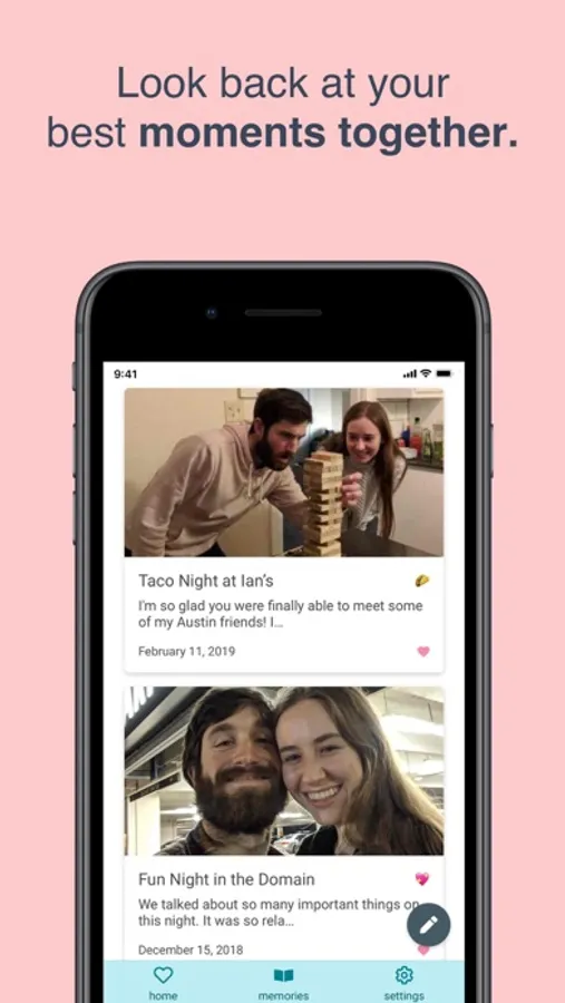 Social media is too public and scrapbooking is too hard - share your memories with your partner in one place, just for the two of you. Each memory has a place for you to upload photos and each add a note about your special moment.