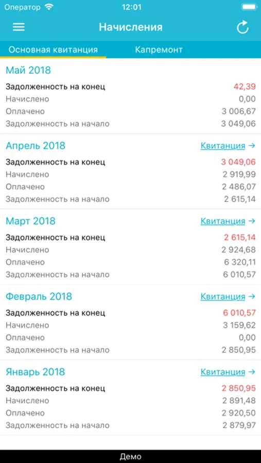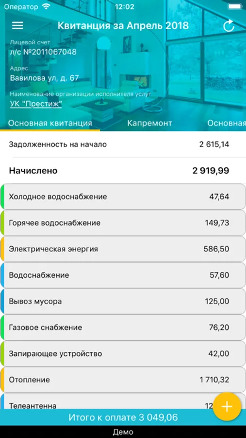 По умолчанию приложение предоставляет доступ только к демонстрационной версии личного кабинета. Чтобы Вы могли войти в свой личный кабинет как жилец, ваша управляющая компания должна выдать код доступа к вашему личному кабинету.
