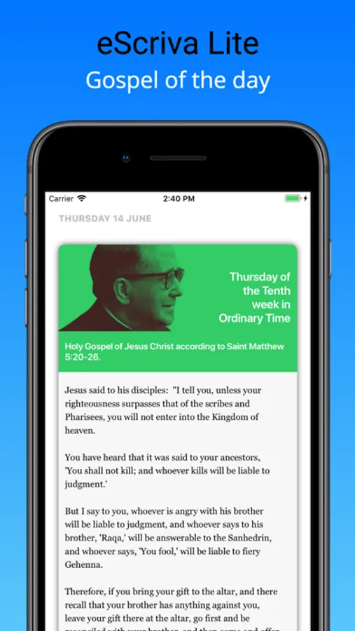 Allow St. Josemaria to guide you as you pray with the daily Gospel. This free app combines the gospel of the day together with St. Josemaria's published works.