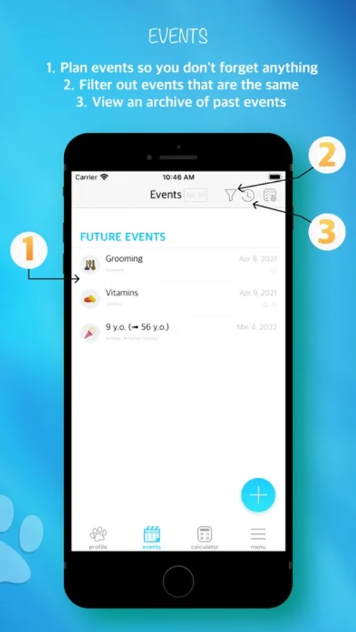 - set reminders so you won't miss a vet visit or your furry friend's birthday [PRO];