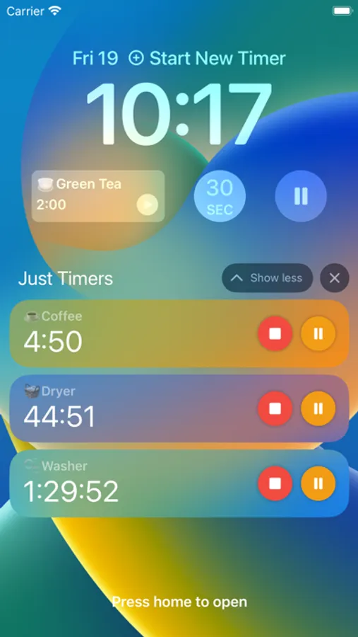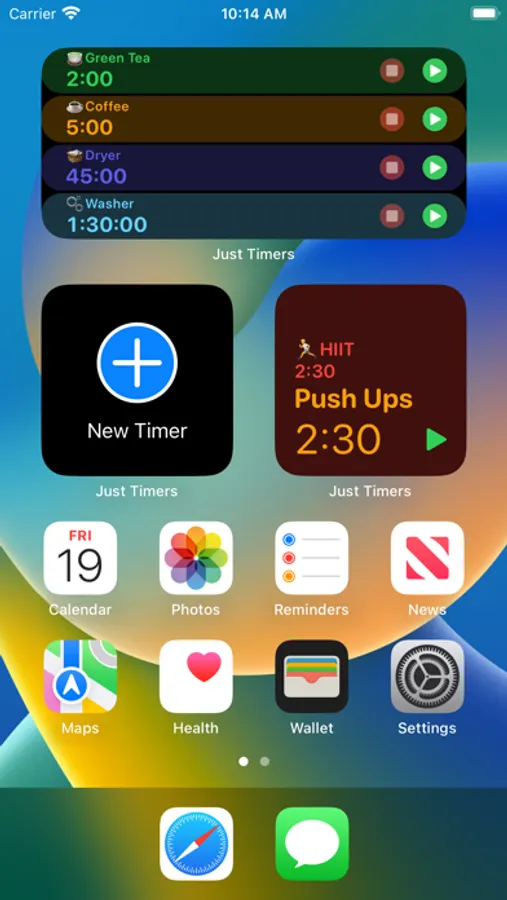 Use widgets to keep track of and control your timers, as well as quickly create single-use "self-destruct" timers