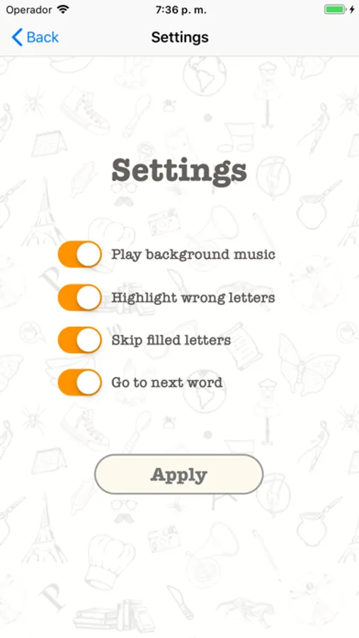 • Help options: allows you to highlight wrong letters, filter the keyboard or reveal words;
