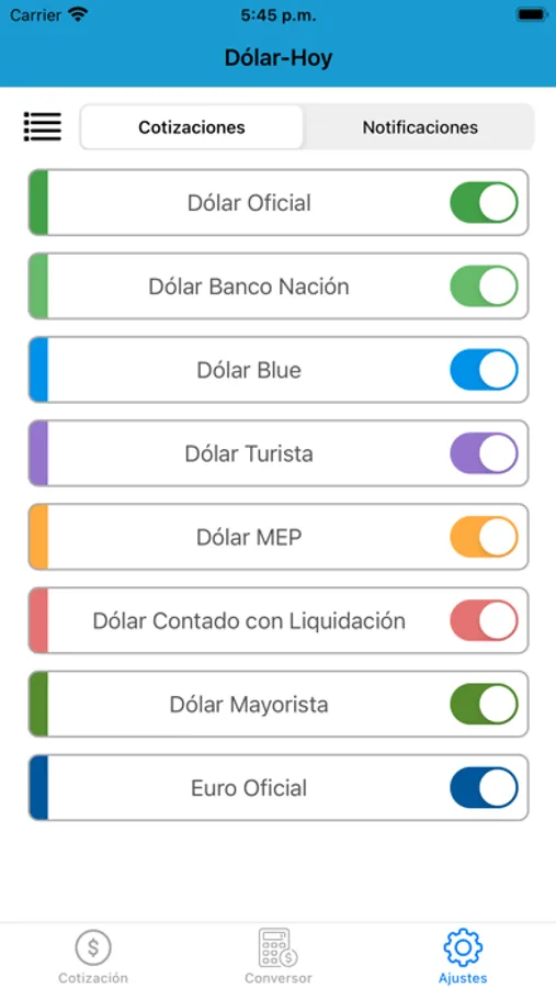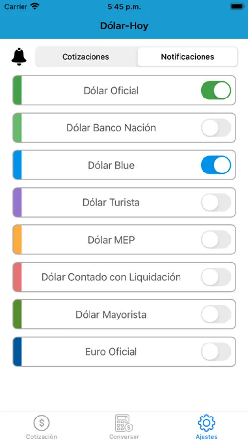 La app incluye servicio de NOTIFICACIONES que notifica cada vez que fluctúa el precio del dólar.