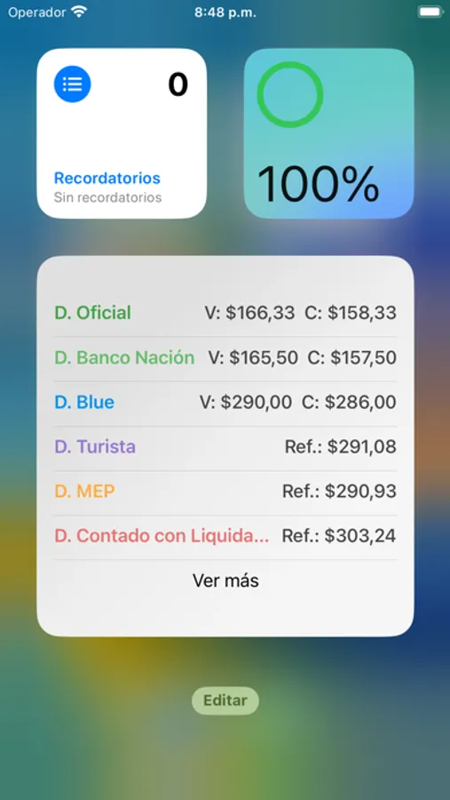 WIDGET con actualización automática para que sea aún más fácil conocer las diferentes cotizaciones del día.