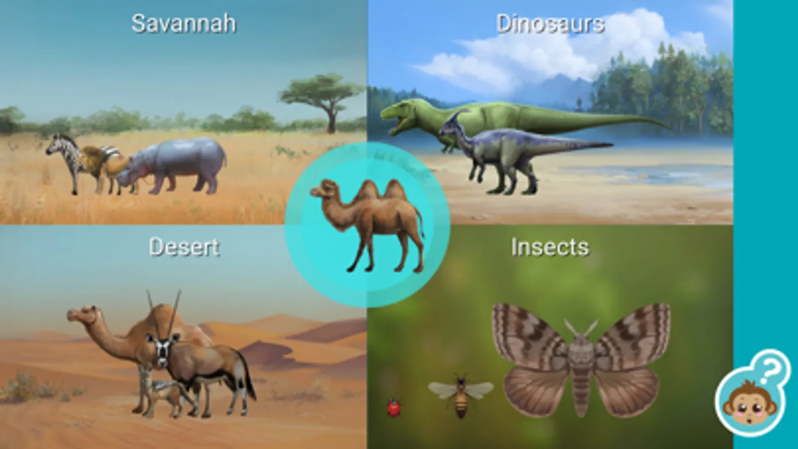 This game teaches children from 3 to 4 years old the habitat of the animals, to organize them and to combine the first letters and words.