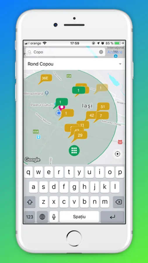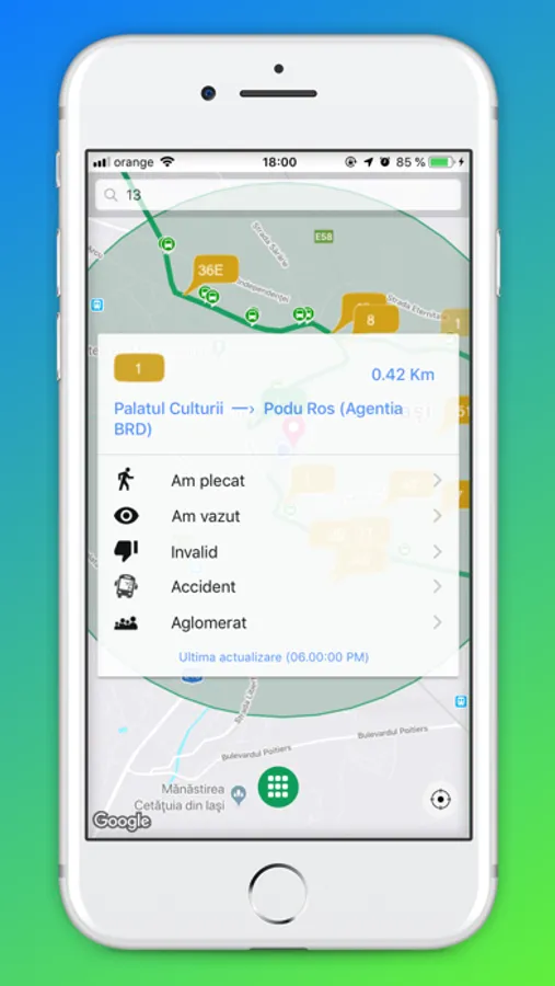 Instalati aplicatia pentru a vedea pe harta in timp real mijloacele de transport in comun din Iasi (si din celelalte mari orase alea tarii: Alba, Arad, Brasov, Bucuresti, Cluj, Constanta, Craiova, Iasi, Oradea, Ploiesti, Sibiu, Timisoara, in curand si Bacau).