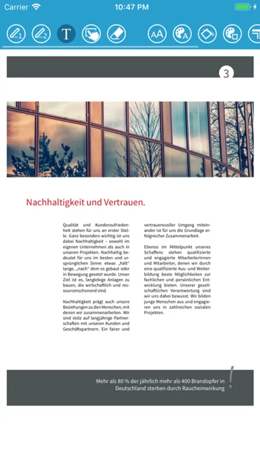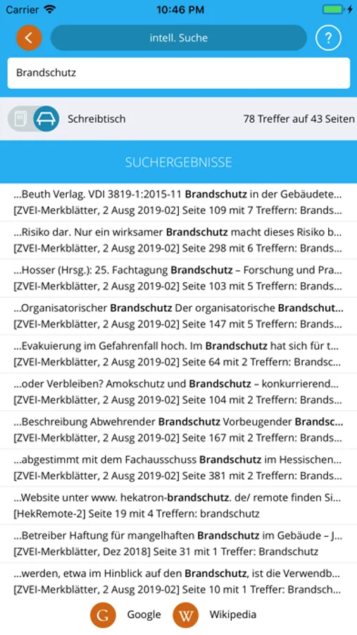 Die App Brandschutz Doku-Center bietet eine intelligente und sehr schnelle Suche sowohl nach Titeln als auch nach Stichwörtern in Dokumenten. In den einzelnen Dokumenten vorhandene elektronische Verzeichnisse und Links bleiben erhalten und sind in der App voll nutzbar. Textstellen sind markier- bzw. kopierbar und können mit Text-, Bild- und Audiokommentaren versehen werden.