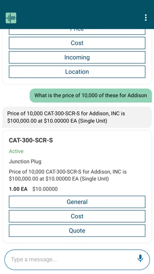 Epicor Virtual Agent (EVA) is intelligence personified for Epicor® ERP, Eclipse and Prophet 21® systems across industries. Users will be empowered by the context-aware natural language processing of EVA. Voice or text commands on your mobile device are a great time-saver—with the EVA app, you interact naturally with your ERP system. It is as easy as just talking or typing to a colleague. EVA also presents richly formatted information and guides the user by suggesting the next set of navigations and actions. This makes the breadth and depth of the industry-specific functionality and information available inside the system directly accessible to a larger audience, boosting productivity and efficiency, and giving your company an improved return on ERP investment.