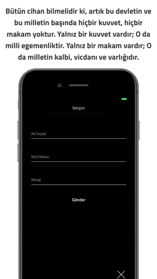 Vatanı için hayatını veren ulu önder “Beni görmek demek mutlaka yüzümü görmek değildir. Benim fikirlerimi, benim duygularımı anlıyorsanız ve hissediyorsanız bu kafidir.” demişti. Özgürlüğün, bağımsızlığın, egemenliğin, cumhuriyet ve devrimlerin yılmaz bekçileri olarak onun fikirlerini ve sözlerini rehber edinmek en kutsal vazifemizdir. Bu doğrultuda O'nun sözleri bu uyguluma ile kullanıcılara sunulmuş ve Ata'mıza karşı olan vazifemize yardımcı olunması amaçlanmıştır.
