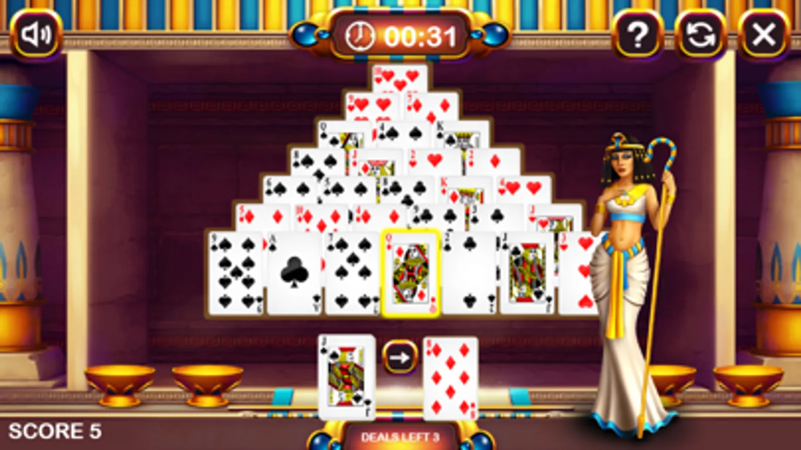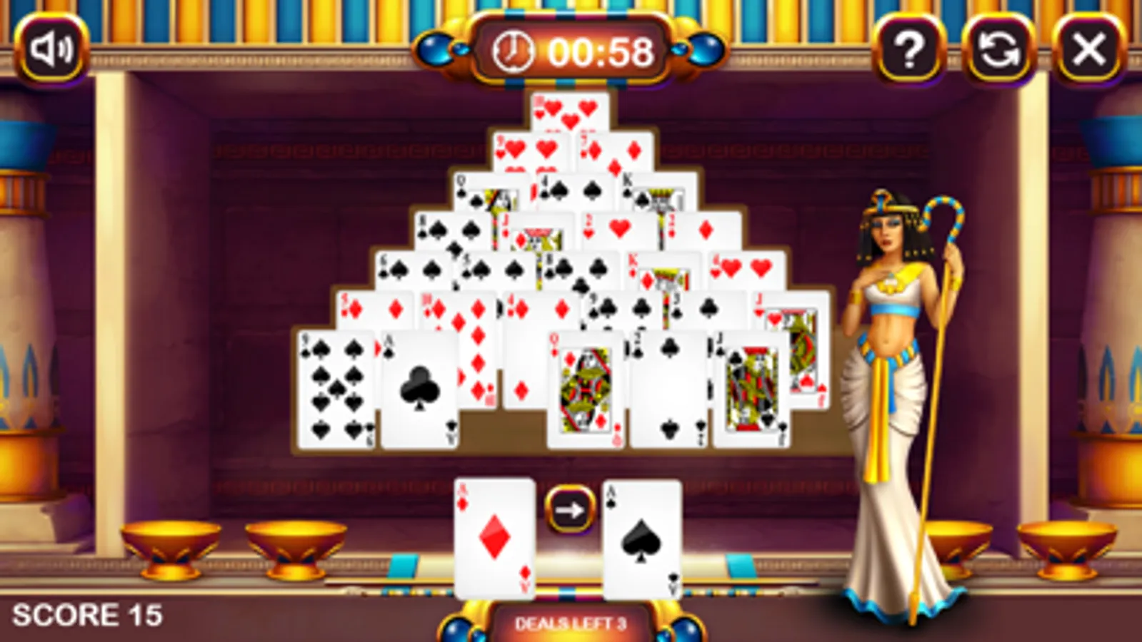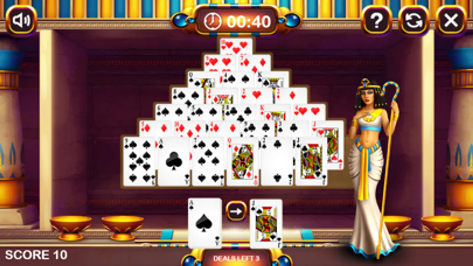 Pyramid Solitaire Cards is a very fun one-player card game and has a great design. The object of the game is to discard all 52 cards, demolishing the pyramid in the process. Once you remove all cards from the pyramid you win. Pyramid Solitaire is fun and easy to play, drag and drop two cards to combine and add 13 to remove.