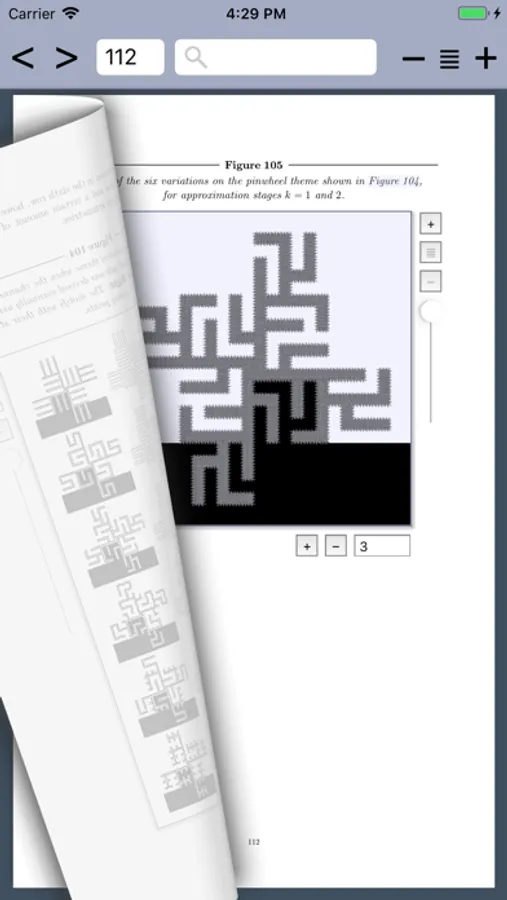 But that's just the first dozen pages. This 160-page app/book then proceeds to explore and illustrate the ways the Hilbert Curve construction can be generalized into an amazing array of space-filling curve designs, paths, patterns, and tiles, ranging from fractal pinwheel curves to half-domino curves with almost-everywhere linear borders to fuzzy-topped squares. Along the way, it explains or proves the mathematical journey taken.
