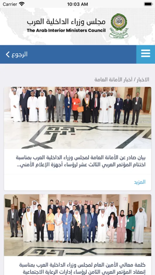 منظومة ذكية لخدمات واخبار الامانة العامة لمجلس وزراء الداخلية العرب ، تهدف إلى تعزيز التواصل مع الجمهور ، ويتيح هذا التطبيق ايضا فرصة الاشتراك في خدمة استلام الاخبار العاجلة والنشرات التوعوية وكل ماهو جديد عن الامانة
