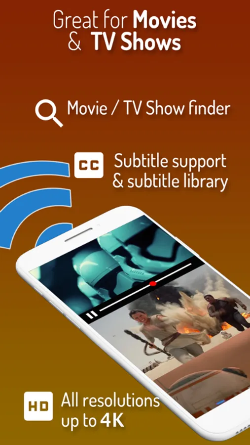 • HD resolution supported (1080p and up to 4K depending on the device)
