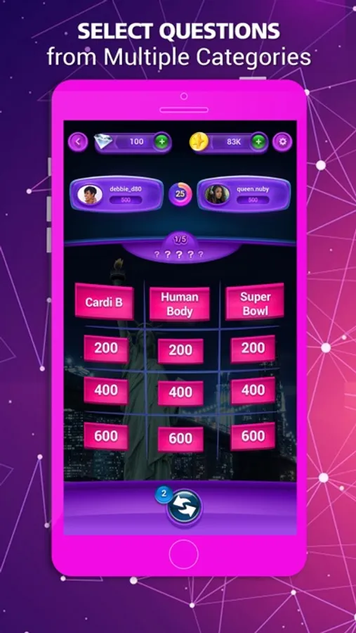 Show-off your knowledge in this online trivia game featuring players from all over the world. Choose your category and answer quiz questions to win games and earn coins that you can use to compete in various cities around the world.