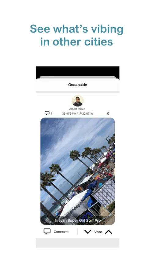 CityVibes is a social network for your city. See what kind of vibes there are in your city, explore a new city, or share some vibes wherever you are.