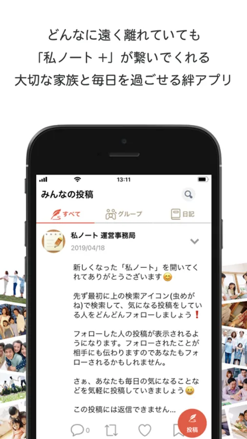 又、通常のSNS機能もありますので家族以外の方との交流も含めてたくさんの人とつながりを持つこともできます。