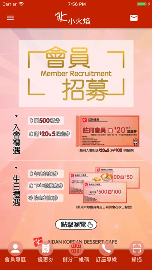 使用此手機程式登記註冊成為”小火焰”會員,您可以獲得下列優惠: