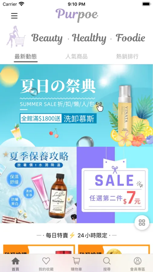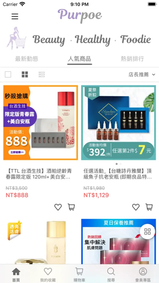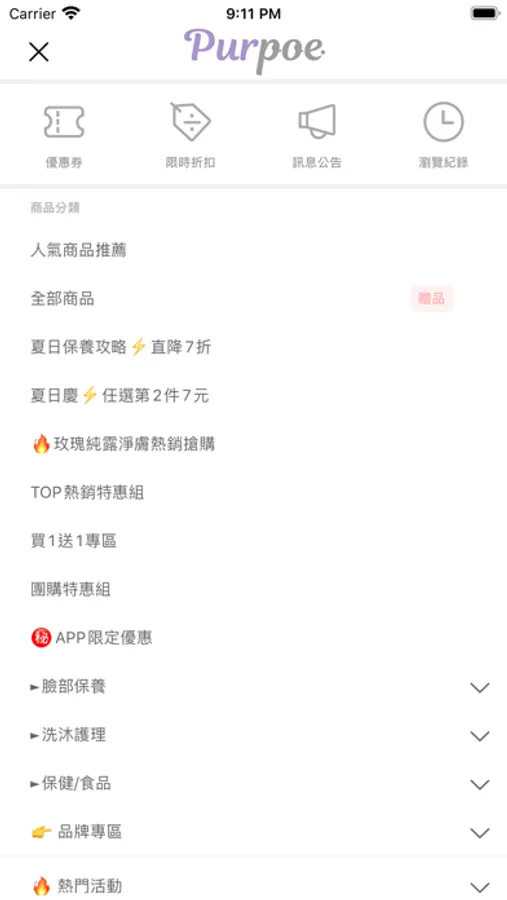 Purpoe擁有各種進口品,也有著台酒,台鹽的保養品,還不定時有各種優惠,APP推播功能讓你不再錯過任何活動!