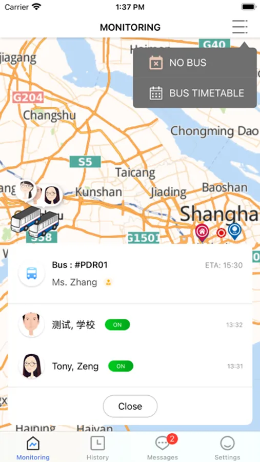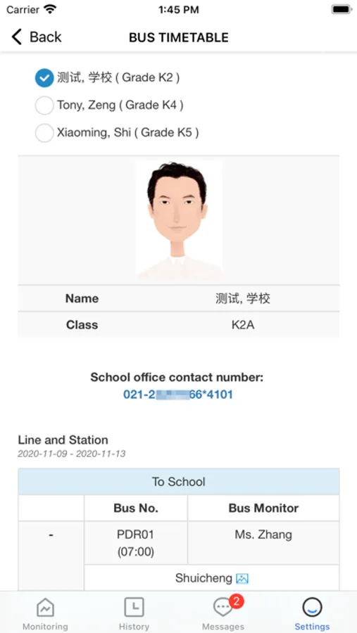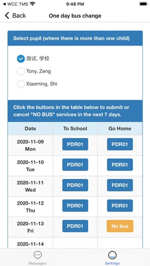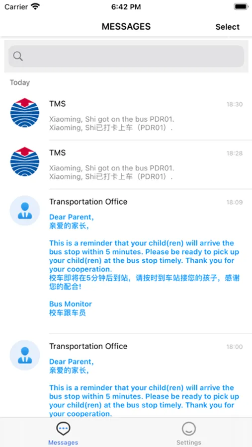 In YCIS TMS(YCIS Transportation Management System), you can look for the line number of the bus that your child is riding, and also can receive messages from the Transportation Office. All the data collected is based on the student who is swiping the card when he or she gets on and off of the bus.