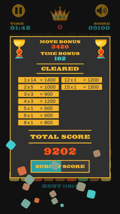 • Game ends when times run out or all blocks is destroyed