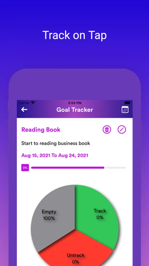 • Also it includes a good thing that tells you about the status of your goal weather it is in progress or completed. It also displays a list with track and untrack days.