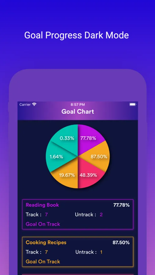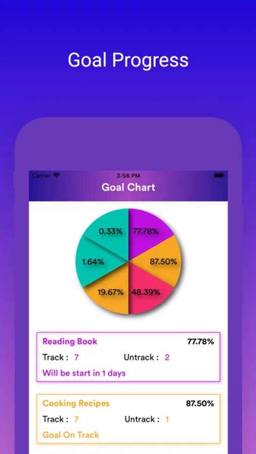 • Goal Chart Screen will Show you Pie chart with How Many Goals you have set and How much percent you reach to your goal.