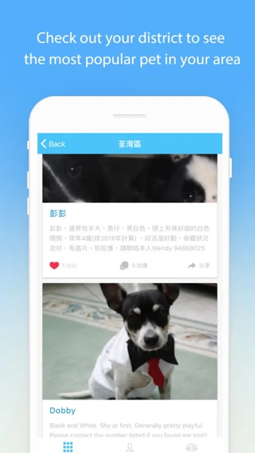 We promise to Love Pets for Life. In Hong Kong, 5 pets go missing everyday, and only 1 can return home safely. We wish to help more pets reunite with their owner. Whospets is a mobile app for pet, when your pet is lost, we will send notification to inform other pet owner in your local area. So we can all keep an eye for each other! Whospets hopes to coordinate all the pet lovers in your local community to give your pet a better chance of returning home when lost.