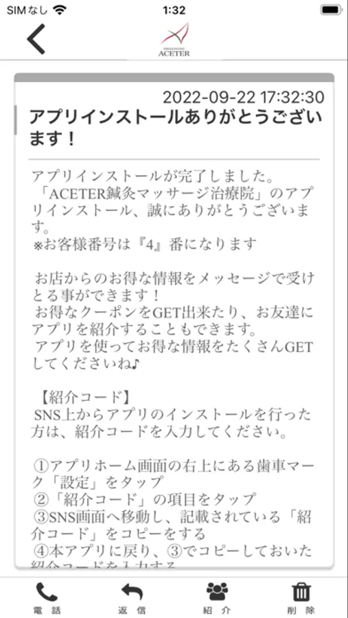 ACETERのアプリをSNSを通じてお友達に紹介する事ができます。