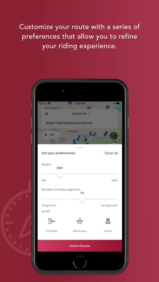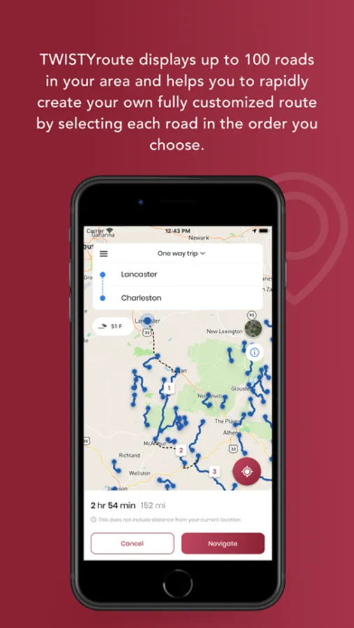 Search for and Display up to 100 twisty roads at once, increasing your ability to create and navigate the most fun rides possible.