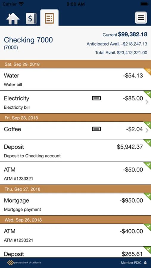 The Partners Bank of California Business Banking Mobile app lets you conveniently and securely bring your banking with you on your iPhone. You get the functionality and convenience of Partners Bank Business Online Banking – plus you can make deposits, right from your Apple device.