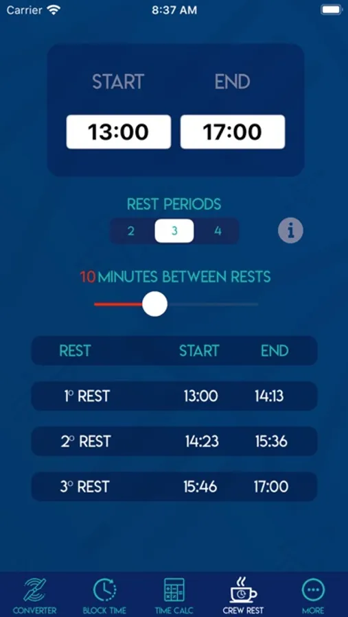 • In Flight Crew Rest, during long haul flights the Aero Time Int will calculate the time available to your crew for these rests and it will generate different times at which these periods will start and end
