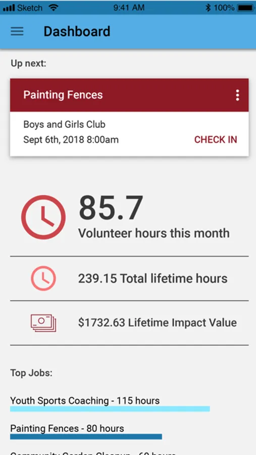 The app will also remind you when it’s time to check out and stop your volunteer clock.