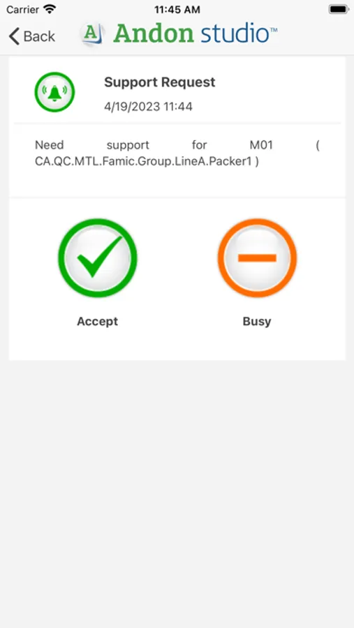 Receive and respond to Andon Studio™ notifications in or out of the plant