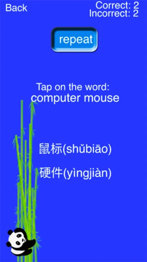 Eagle Mandarin quizzes students on vocabulary words and the student chooses the correct answers from several randomized choices. The app speaks the Mandarin words to help you to learn pronunciation. For additional help, you can turn on the pinyin version of the Mandarin characters.