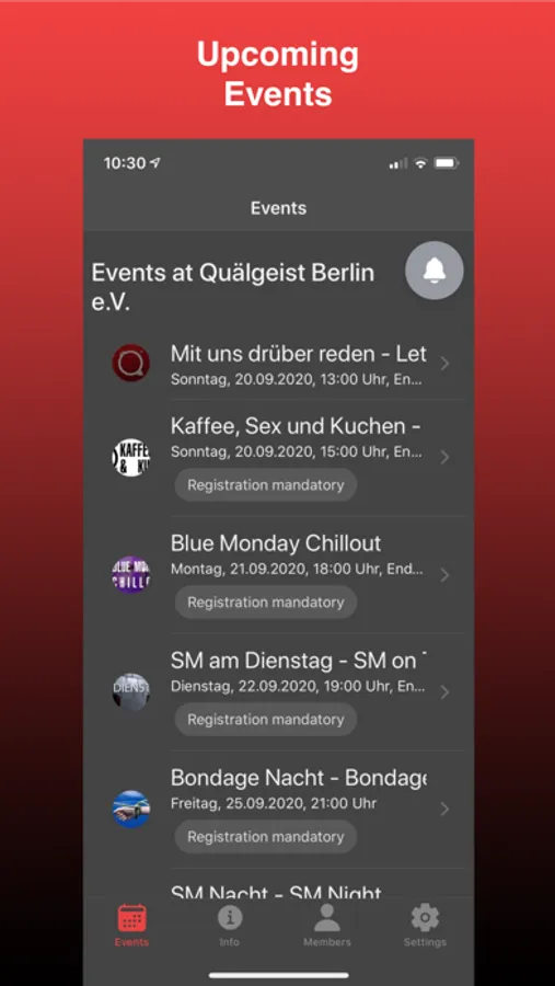 The app of the Quälgeist Berlin e.V. offers you easy access to information and the event dates of the association. You may also register for events directly in the app. In addition, you can activate push notifications to receive current information such as event changes or important news via push. There is no user account registration required! Please note the privacy policy in the app.