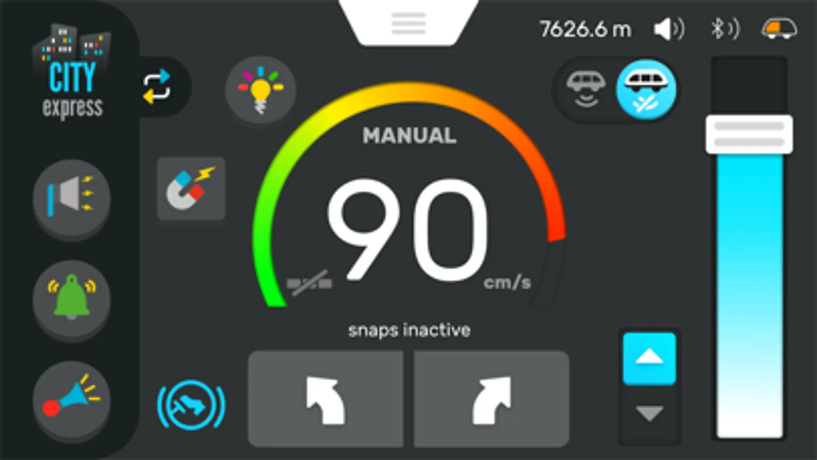 - AUTOPILOT MODE: combines remote control of the smart train with the color commands on the track. In Autopilot mode, you can use the app's drive dashboard to see the train's real-time speed, distance driven and notifications from the train. But at any moment, you can override the train's movement direction, speed and steering, change train's light colors, play sounds, or even remotely decouple the wagon.