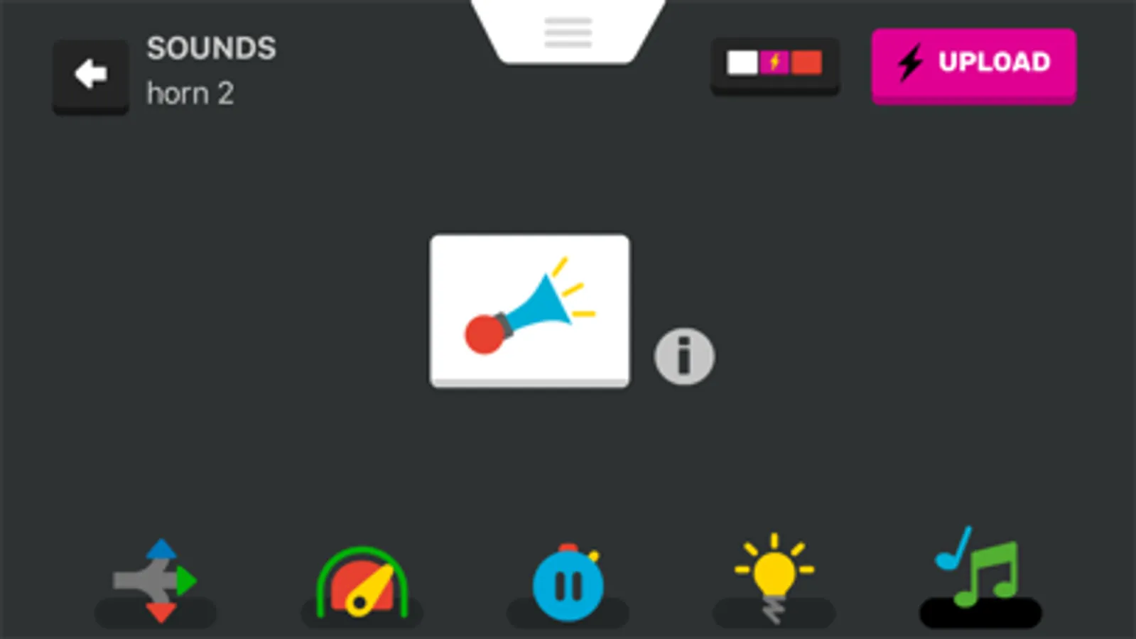 Command editor lets you create custom commands and store them on the smart train. In addition to the 16 commands that work screen-free right out of the box, you can set 4 additional commands based on the special magenta colored snap. Just open the editor, select a color sequence and configure the action you'd like to associate with it. Then upload it to the train wirelessly and instantly.