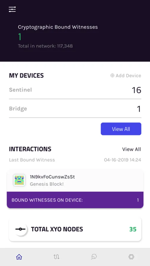The XYO Network app allows your iPhone or iPad to become a Bridge, connecting to Sentinels (via Bluetooth) and Archivists (via mobile data or WiFi) to power XYO Network by gathering heuristic ledgers, which provide proof of location. Alternatively, your device can act as a Sentinel, becoming a heuristic witness for the XYO Network when near other XYO Bridge devices.