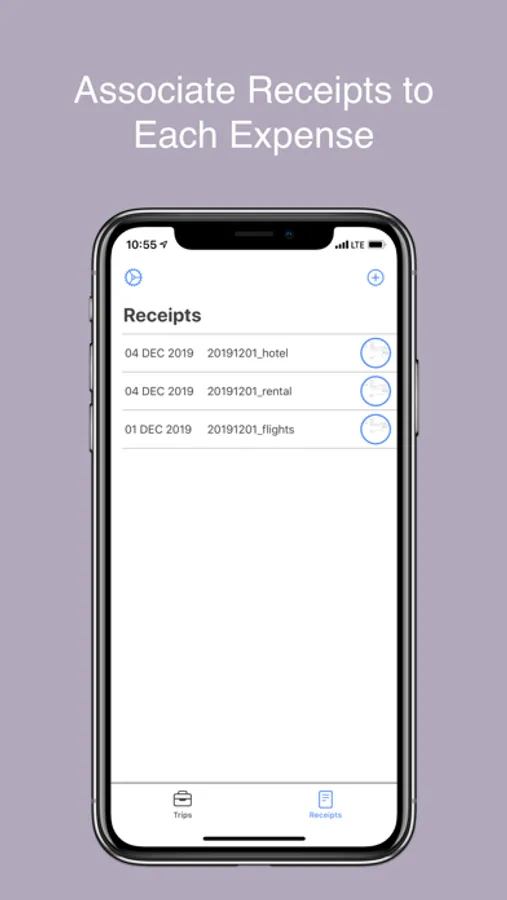 - Associate receipts to one or more expenses
