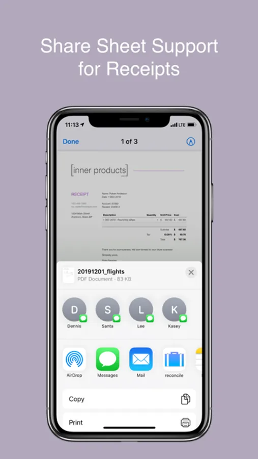 - Supports Apple Share Sheet for adding receipts from other Apps