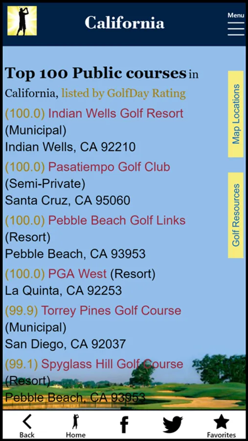 GolfDay California includes over 800 courses in the state of California, with a GolfDay Rating and proximity search making it easy to find a great course near you or where you plan to be. Listings also include rates, booking links, course detail, golf league and junior golf information, mapping/directions and local weather. Don’t waste your valuable time at a Dog Track!