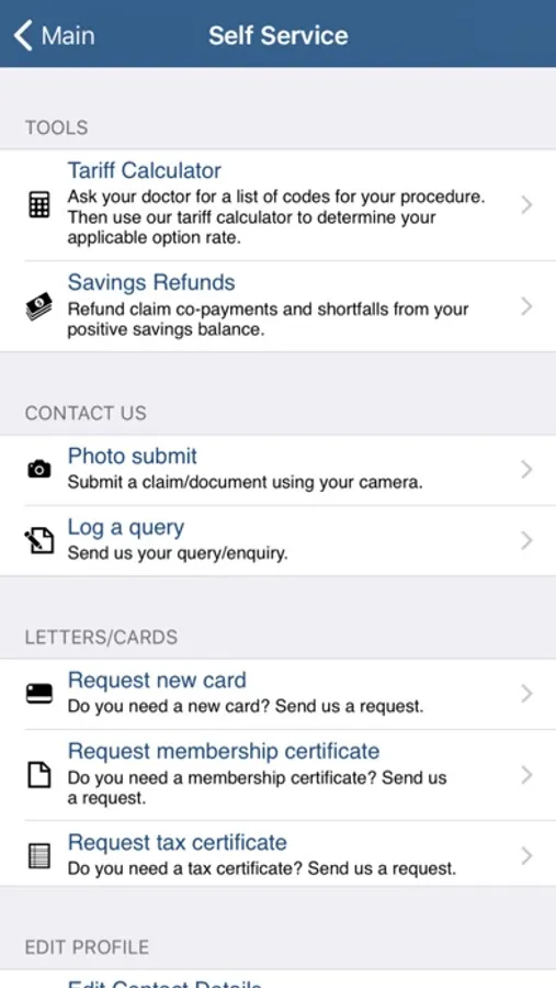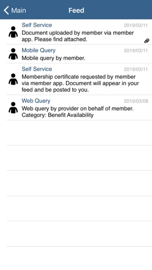 Information Feed: A list of all recent interactions between yourself or your membership and Metropolitan Health Lesotho. Including records of interactions with contact centre agents, recent statements.