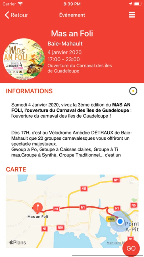 - Locate the events with the route from your position,