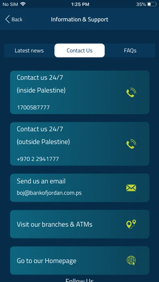 Download and register on “BOJ Mobile - Palestine”, and you can log in with just a fingerprint, find your nearest branch or ATM, process transactions, make transfers and payments, credit card payments,...