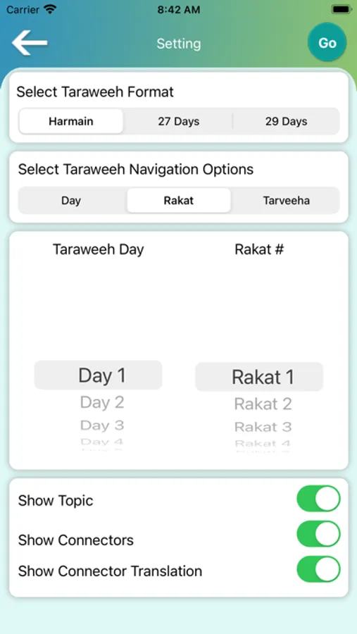 Quran and Taraweeh application is a unique opportunity to prepare oneself for Taraweeh not only during Ramadan but throughout the year from a minimum to the maximum level of preparation facility.