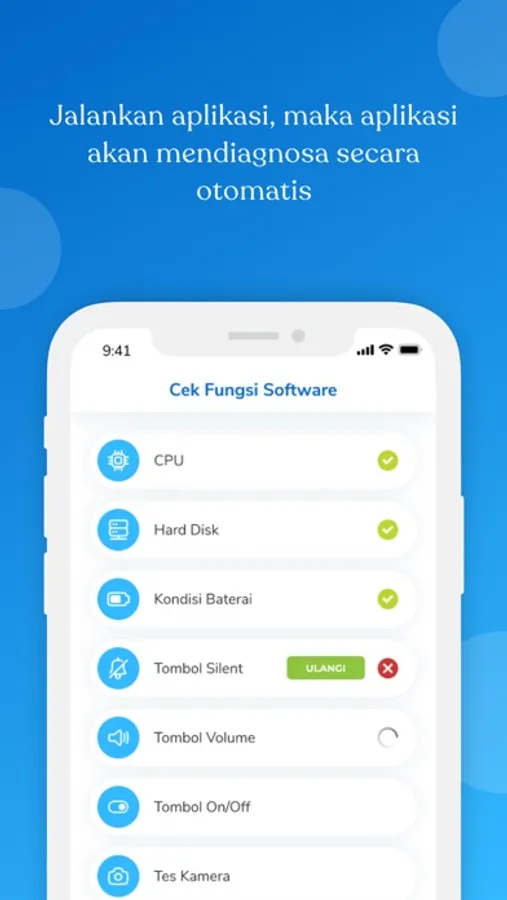 • Klik Mulai dan aplikasi akan memulai proses diagnosa secara otomatis, ikuti tahap yang ada dalam aplikasi hingga muncul harga (valuasi) smartphone kamu.