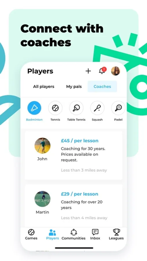 Want to up your game? Use RacketPal to find experienced coaches and sparring partners who can take you to the next level.