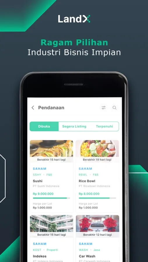 Bisnis yang terdaftar di LandX telah melalui penilaian ketat yang menjamin komitmen bisnis sehingga investor dapat memercayakan pilihannya dalam membeli saham.