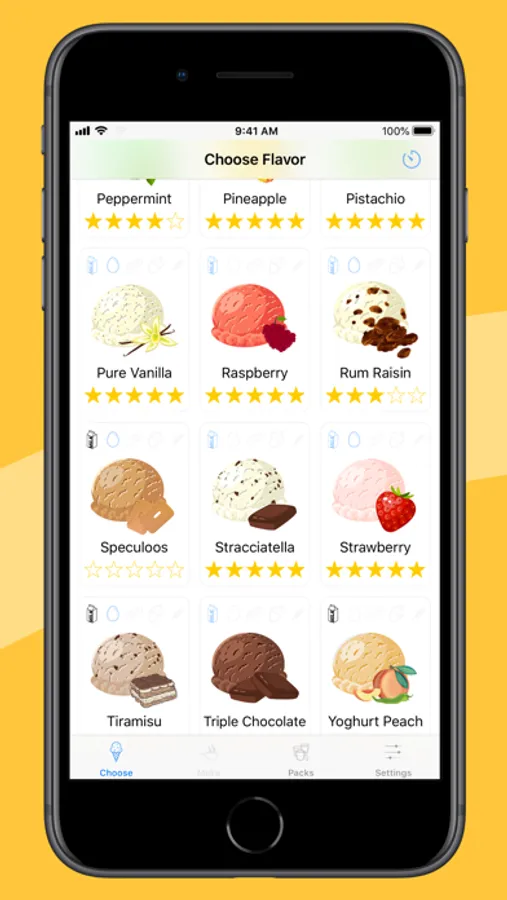 When you buy Gelato it comes with 10 classic flavors. Want more? Extra flavors are sold in packs of 4, with each pack costing less than a single scoop in an ice cream parlor. Every time you buy a pack you help with the continued development of the app, and we test every flavor personally before releasing it. If you want all of the flavors, then jump the gun and buy the Chef's special. You get all the flavor packs, both the ones out now and those we'll be releasing in the future. Simples!