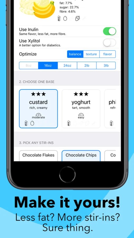 Don't confuse this with just doing an online search though! Gelato tailors recipes to your ingredients so that they are perfect. Every. Single. Time. Do you want the ultimate triple chocolate ice cream, with chocolate slivers, brownie bits, topped with hot fudge and peanut butter sauce, and a dollop of whipped cream? And maybe reduce the fat by 25%? Gelato has the recipes for you. You want that as a vegan recipe? Not a problem. Do you have allergies? Gelato can let you know - and help you avoid - the allergens. Or maybe you want to choose between a rich custard base, a refreshing Philly base, or a milky gelato base? This app does that too.